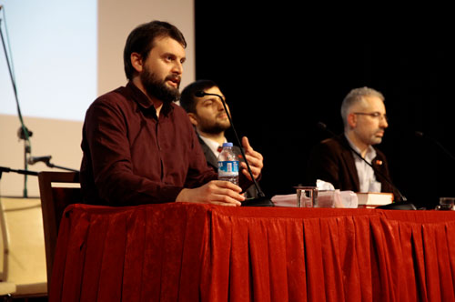 Gökhan Göbel: Biz de Oruç Özel’e teşekkür ederiz. Bir hususu zikredip Seyfullah Köksal’a sözü vereceğim. İsmet Özel kitapta felsefe yapmaktan değil felsefe bilmekten bahsediyor. Türk felsefesinden bahsetmiyor. Filozof Türkler vardır ama Türk felsefesinden bahsetmiyor. Bizim bir Türk felsefesi icat etmemiz ne gerekli ne de mümkündür. Bunu da söylüyor. Çünkü başka milletlere benzemeyiz. Mesela Alman idealizmi diye bir şey var. Eğer Alman idealizmi olmazsa Almanlar olmaz ama Türkler için tek varlık sebebi İslâm. Bizim için bir Türk felsefesi üretmek ne gerekli ne de mümkün. Zaten bunca felsefeye bir de Türk felsefesi eklemek bizim işimiz değil. Çünkü İslâm’dan başka herhangi bir vasfımız yok. Bizim işimiz felsefe bilerek bütün dikkatimizi Allah’ın bize verdiği tarihe yani Asr-ı Saadete ve Hulefâ-i Râşidin devrine çevirmemizdir diyor aslında İsmet Özel bu kitapta. Allah bize bir tarih verdi. Biz felsefe bilirsek, ki bu da felsefe bilmek de yazımızın elimizde olmayışının mazeretidir, yani yazımız elimizde olmadığı için felsefe bilmekten bahsediyoruz. O yüzden he işin aslını mıncıklamak zorunda kalıyoruz ama yazımız elimizde olsa… Mesela Türk demeyelim diyenler aynı zamanda “gâvur da deme” diyor. Yani gâvur deme diyor ne de diyor mesela daha kibarcası güya "ecnebi" de diyor. İşte "ecnebi film" falan diyorlar. Hâlbuki ecnebi de -Türkçe bilse bunu söylemez- “cenabet, cünüp, gusülsüz” demek. Yani ecnebi de hiç öyle bir iyi bir şey değil. Asr-ı Saadet’ten bugüne ama bilhassa Tebük’ten bugüne bir tarihlendirme de verdi İsmet Özel bize bu kitapta. İlk defa Müslümanların merkezde olduğu bir tarihlendirme ve bunun kritik noktaları var ve bu ancak sınıf bilincine ererek erişerek temin edebileceğimiz bir şey. İstanbul Şubemiz üyesi Seyfullah Köksal bu hususta bir şeyler söyleyecek. Sözü ona tevdi ediyorum.