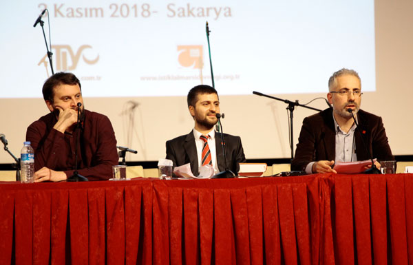 Oruç Özel: Evet, cansız bir toplantı gibi oluyor diye biraz heyecanlı bir şeyler söyleyeyim. Biraz önce sizleri yani okuyucuları Türk Yazısı’nı okumaya icbar ediyoruz demiştik, aslında aynı zamanda yazmaya da teşvik ediyoruz. Nasıl teşvik ettiğimizi de daha önce de bir kere ilan etmiştik pek çoğunuz duymamışsınızdır diye tahmin ediyorum. “Sınıf Bilinci”nin arkasında bir ilan var. Burada “Reşat altınları hak edenleri bekliyor” diye yazıyor. Bu bir müsabaka. Biz Türk Yazısı’yla sizlerin veya her kim isterse onların yazı yazmayı öğrenmesi ve el yazısıyla İstiklâl Marşı üzerine metinler yazarak müsabakamıza katılmasını istiyoruz. Her sene derneğimizin kuruluşunun sene-i devriyesine kadar bu yazılan metinlerin gönderilmesini talep edeceğiz. Ve sene-i devriyelerimizde de -her sene- bu müsabakanın neticelerini ilan edeceğiz, kazananları tebrik edeceğiz. Ama sadece kuru kuruya tebrik etmeyeceğiz altın üzerinden, altın vererek birinciye ikinciye üçüncüye onları teşvik edeceğiz yazı yazmaya veya müsabakaya katılmaya. Sınıf Bilinci’deki ilandan da okuyabileceğiniz üzere birinciye 18 Reşat altını ikinciye altı, üçüncüye de üç Reşat altını olmak üzere mükafat vereceğiz. Ben bu ödülün ne olması gerekiyor hususunu tetkik etmemiştim, bu işler nasıl dönüyor kim ne veriyor diye bakmamıştım ama sonra baktım. Baktım ve gördüm ki ala u ala bir ödülümüz var. Yani devlet erkanının, belediyelerin falan verdikleri bunun onda biri, yirmide biri, ellide biri olduğunu da gördüm. İstiklâl Marşı Derneği bu noktada büyüklük gösteriyor diyebiliriz. Bunu ilan etmek istedim. Ezan-ı Muhammedi okunuyor, namaz için ara vereceğiz inşallah fakat bu başlıkla alakalı son bir şey daha söylemeden kürsüden inmek istemiyorum. O da şu: bu beş kitabın içerisinde talebi en az olan kitabın ismi “Küfrün İhsanı Olmaz”, Küfrün İhsanı Olmaz kitabının talebi en az. Eskimez yazıyla Türk yazısıyla da neşrettiğimiz ilk kitap olması ve bu serinin ikinci kitabı olmasına yani Hıristiyan takvimine göre 2013’den beri beş seneyi aşkın bir süredir neşrediliyor olmasına rağmen talebi az. Bu da biraz önce zikrettiklerime manidar bir şeydir diye düşünüyorum. Aynı zamanda işte mesela yani niye teşvik edilmiyor diye soruyoruz mesela kütüphanelere girmiyor. Çünkü devlet memurları bu kitabı ismi sebebiyle talep etmiyor. Adamlar “Küfrün İhsanı Olmaz” adlı bir kitabı kütüphanesine sokmaması gerektiği kanaatinde diyorum, hepinize teşekkür ediyorum.