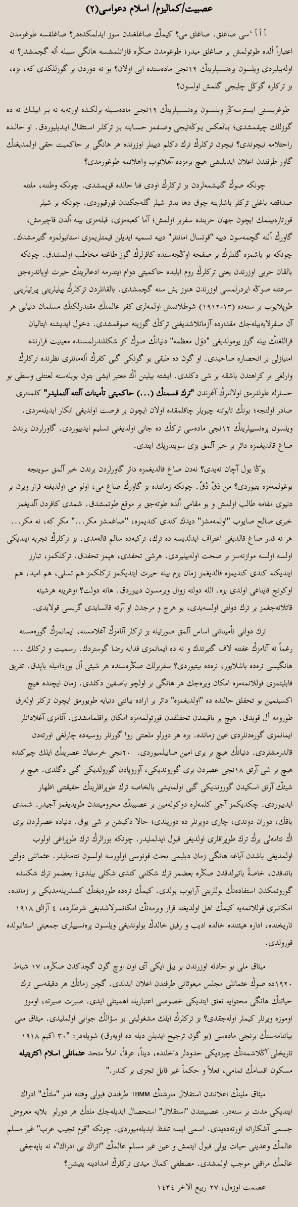 ASABİYET/KEMALİZM/İSLÂM DAVASI (II)