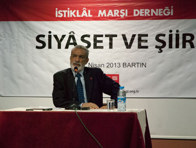 İstiklal Marşı Derneği Genel Başkanı Şair İsmet Özel Bartın’da “Siyaset ve Şiir” serlevhalı bir konferans verdi. Konuşmasının başında Türk tarihi ile Türk siyasi tarihi arasındaki bir ayrıma işaret eden Genel Başkan İsmet Özel şunları söyledi: