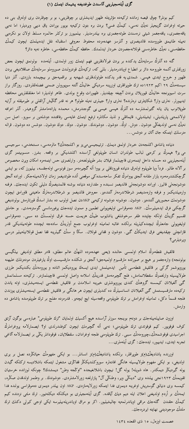 ASABİYET/KEMALİZM/İSLÂM DAVASI (XII)