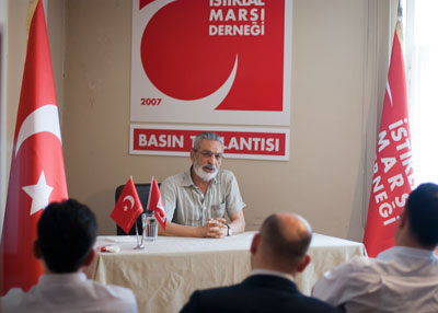 İstiklâl Marşı Derneği İstanbul Şubesi’nde "İSTEMEZÜK"adlı panelin Reyhanlı'da gerçekleşmeyişi üzerine bir basın toplantısı düzenlendi.