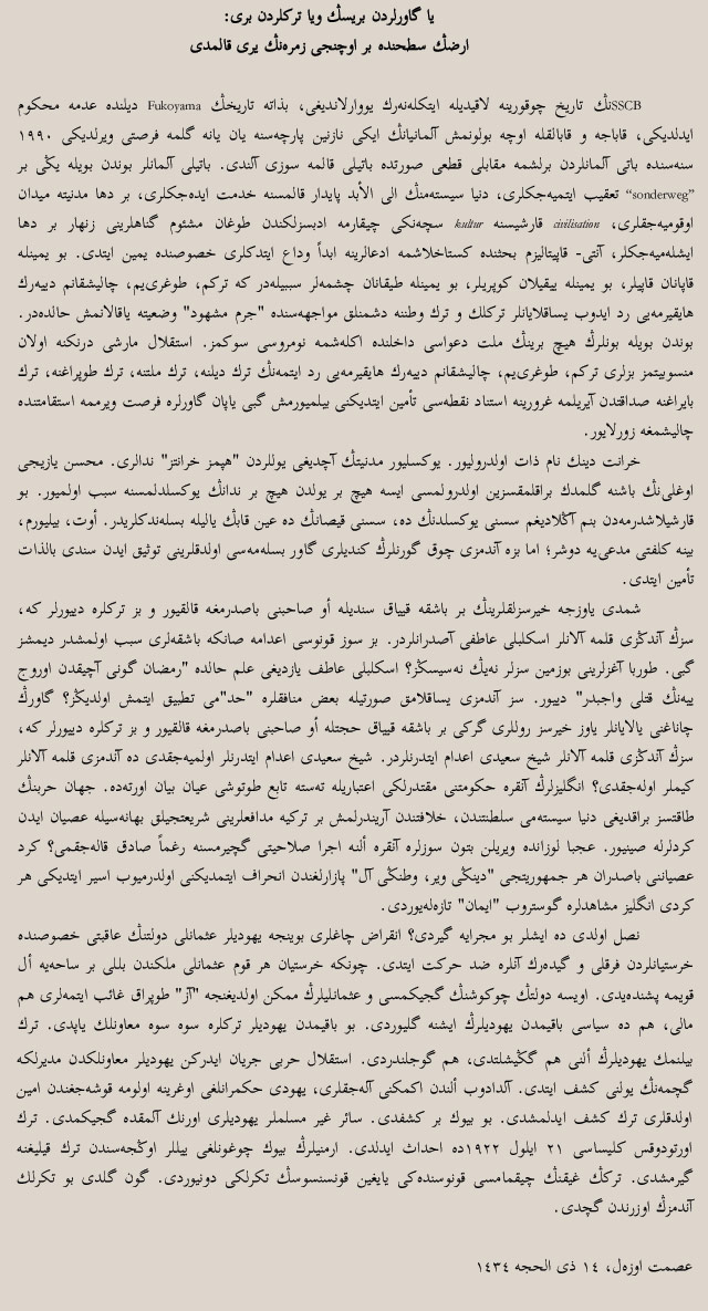 YA GÂVURLARDAN BİRİSİN VEYA TÜRKLERDEN BİRİ: ARZIN SATHINDA BİR ÜÇÜNCÜ ZÜMRENİN YERİ KALMADI