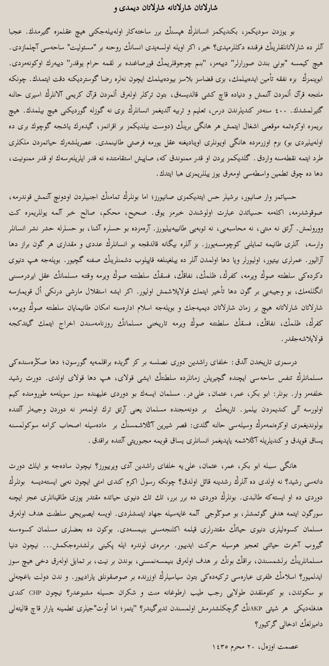 YA GÂVURLARDAN BİRİSİN VEYA TÜRKLERDEN BİRİ: ARZIN SATHINDA BİR ÜÇÜNCÜ ZÜMRENİN YERİ KALMADI