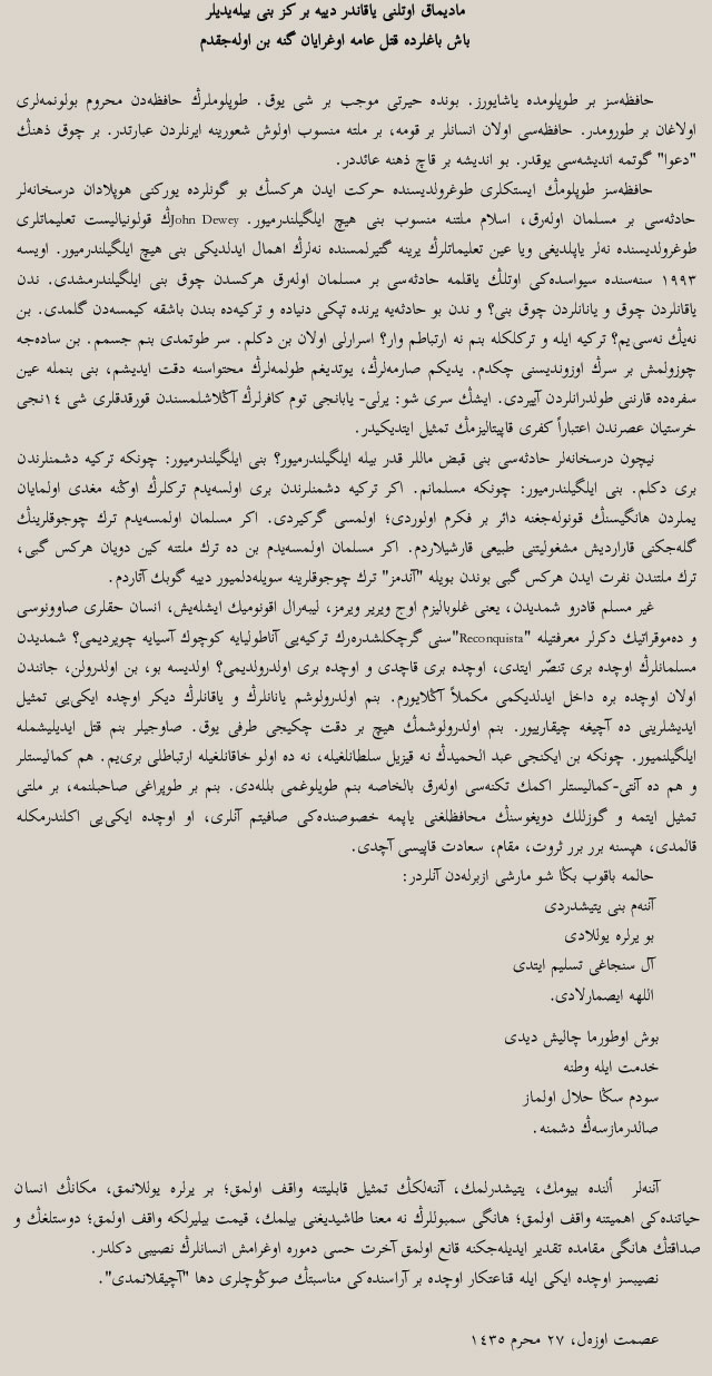 YA GÂVURLARDAN BİRİSİN VEYA TÜRKLERDEN BİRİ: ARZIN SATHINDA BİR ÜÇÜNCÜ ZÜMRENİN YERİ KALMADI