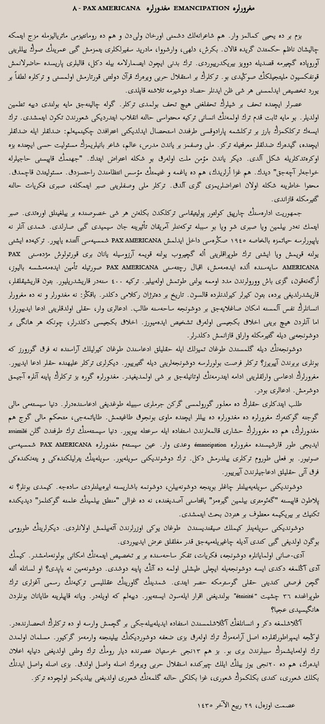 MAĞDURLARA PAX AMERICANA (VIII)