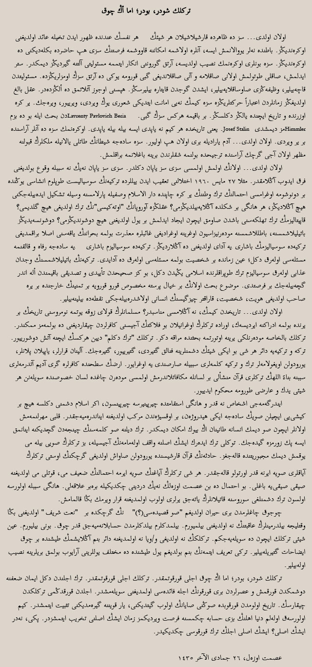 Kendini İslâmi Bir Yükümlülükle Bağlı Saymayan, Türk Olamaz