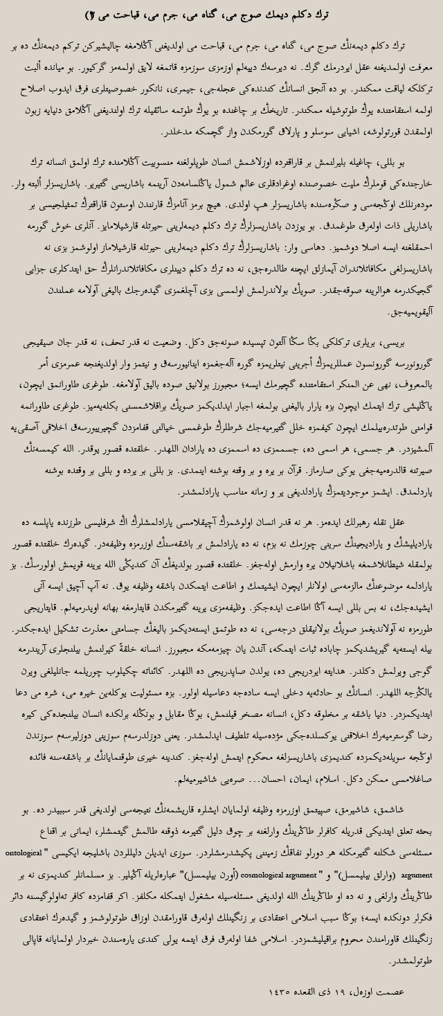 Türkiye’nin istikbali için hayırlı bir iş yapılacaksa işe önce lisanımızdan başlanılmalıdır. Lisanımız olan Türkçe, bir kavmin değil -bir İslam dili olarak- Türk Milletinin dilidir. Müslüman olmadan Türk olunamayacağı gibi Türkçe de konuşulamaz.