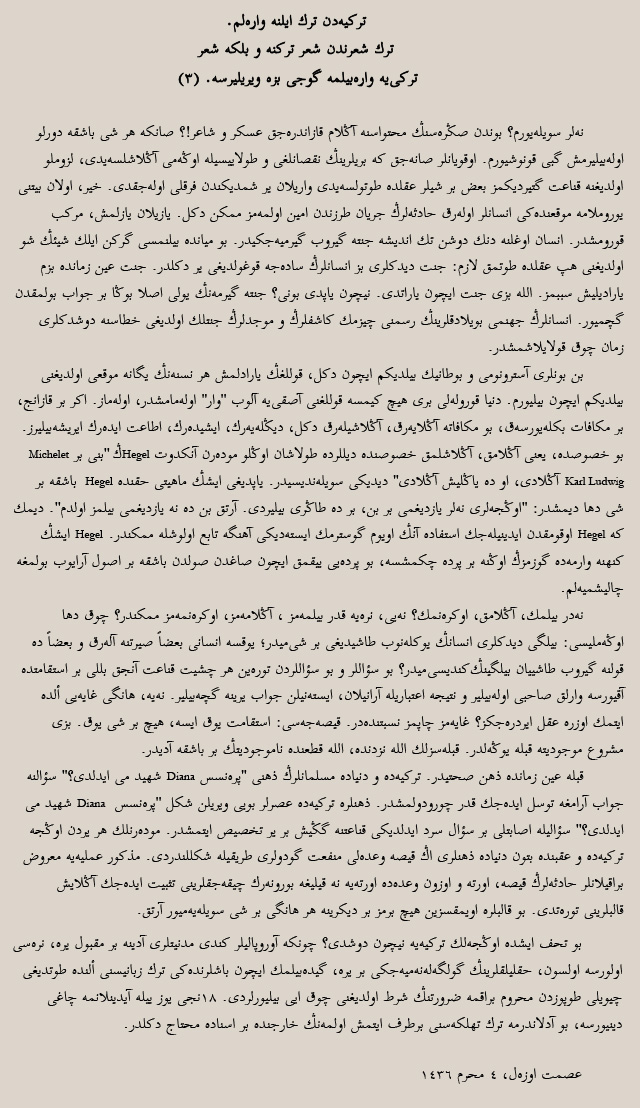 TÜRK ŞİİRİNDEN ŞİİR TÜRKÜNE VE BELKİ ŞİİR TÜRKÜYE VARABİLME GÜCÜ BİZE VERİLİRSE. (III)