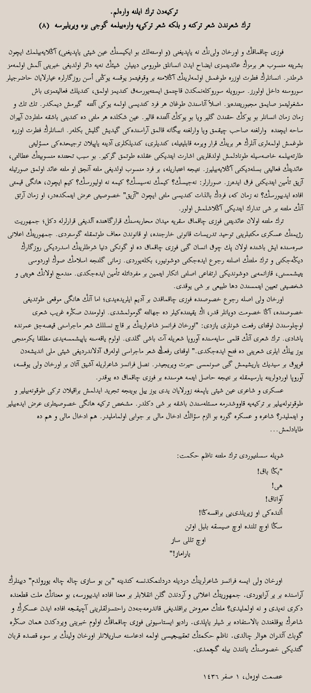 TÜRK ŞİİRİNDEN ŞİİR TÜRKÜNE VE BELKİ ŞİİR TÜRKÜYE VARABİLME GÜCÜ BİZE VERİLİRSE. (VIII)