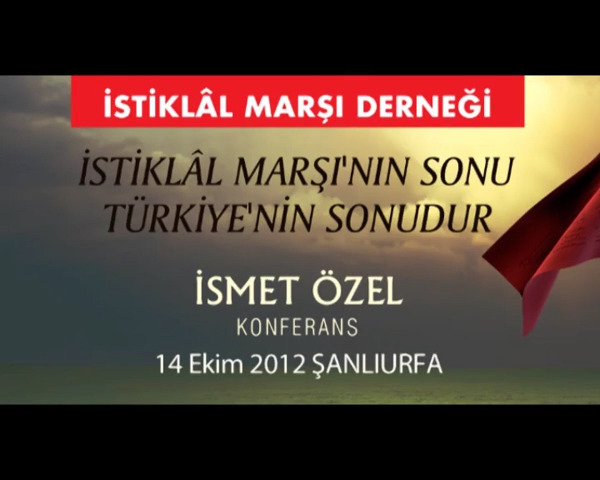 İstiklâl Marşı Derneği Genel Başkanı İsmet Özel'in, 14 Ekim’de Şanlıurfa’da “İstiklâl Marşı’nın Sonu Türkiye’nin Sonudur” serlevhalı konuşmasının görüntü kaydı