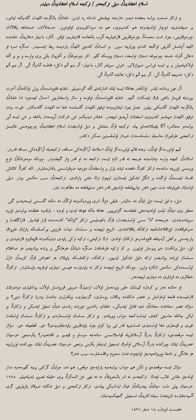 İSLÂM İTİKADININ DİLİ TÜRKÇEDİR / TÜRKÇE İSLÂM İTİKADININ DİLİDİR