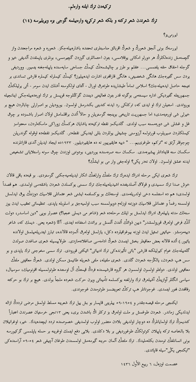 TÜRK ŞİİRİNDEN ŞİİR TÜRKÜNE VE BELKİ ŞİİR TÜRKÜYE VARABİLME GÜCÜ BİZE VERİLİRSE. (XIV)